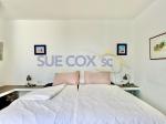 Stairs lead to the first floor landing where you will find the master bedroom. This bright airy bedroom has fitted wardrobes and accommodates a king size bed with integrated headboard and bedside cabinets, aluminium double glazed windows with shutters to the front aspect offering distant sea views.