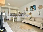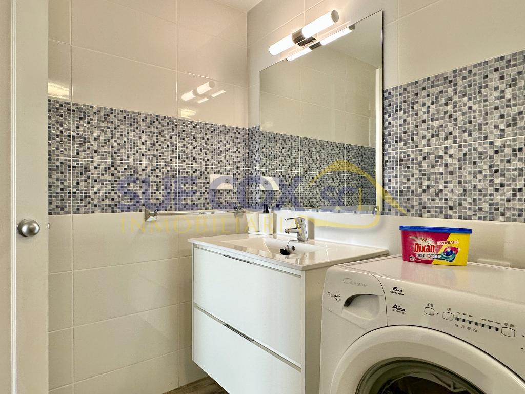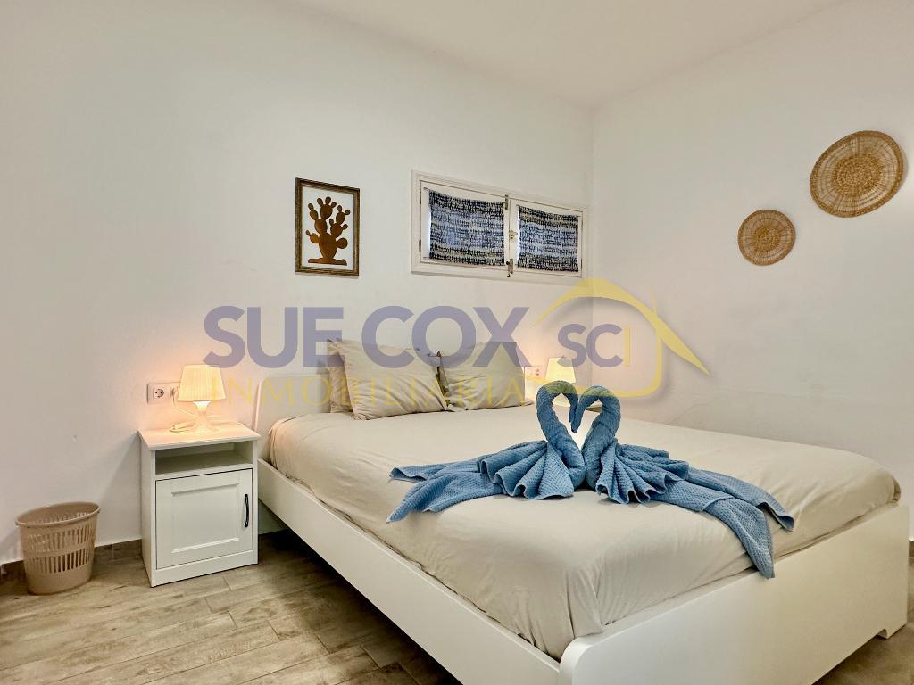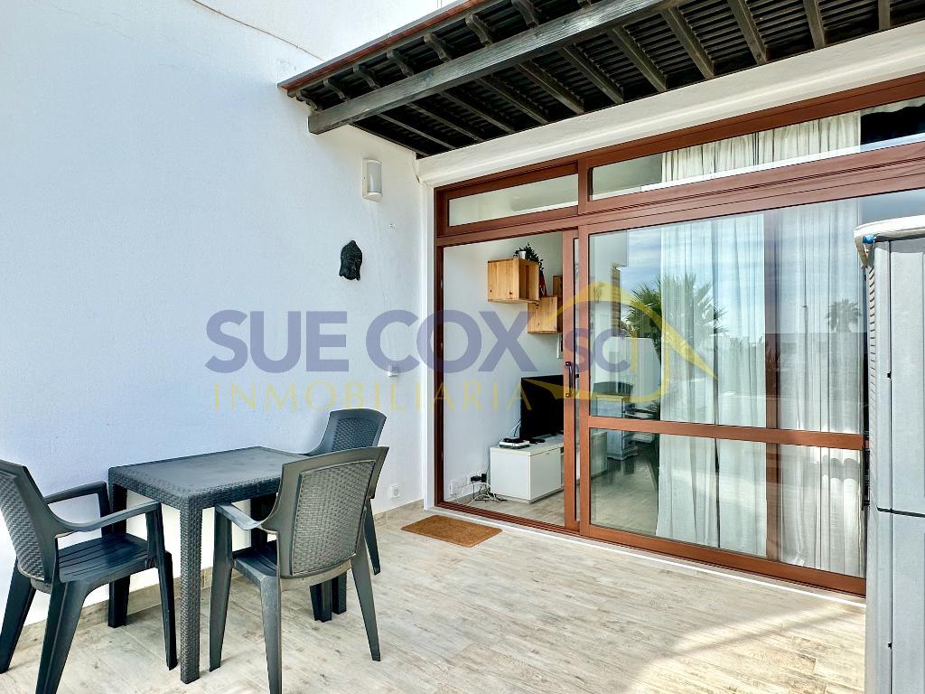 Sue Cox Inmobiliaria is pleased to offer for sale this lovely first floor apartment on the Los Molinos complex in Costa Teguise. The property has been renovated and offers the buyer an open plan living kitchen with integrated appliances including a dishwasher, double bedroom with high level windows, shower room and a South easterly terrace. This property benefits from having no apartments above or below as it sits over the walkway into part of the complex. The property is sold furnished subject to inventory. Parking is on road.